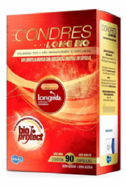 Condres Long Bio EMS caixa com 90 cápsulasO Condres LongBio é um suplemento alimentar em cápsulas, composto por colágeno tipo II não desnaturado e curcumina.